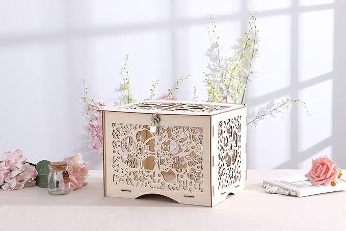 3.9 out of 5 stars. Make sure the smallest box is large enough so that you can cut a slot in its top that will easily accommodate the average greeting card. Wedding card box for wedding reception, clear card boxes with lock, gift card box money box holder for reception sunlana 5 out of 5 stars (34) $ 49.99. Nesting boxes are of graduated sizes with one fitting inside the other. If your ceremony and reception are in different locations, or even different rooms, it's smart to have a plan in place for moving the card box and gift table around.
